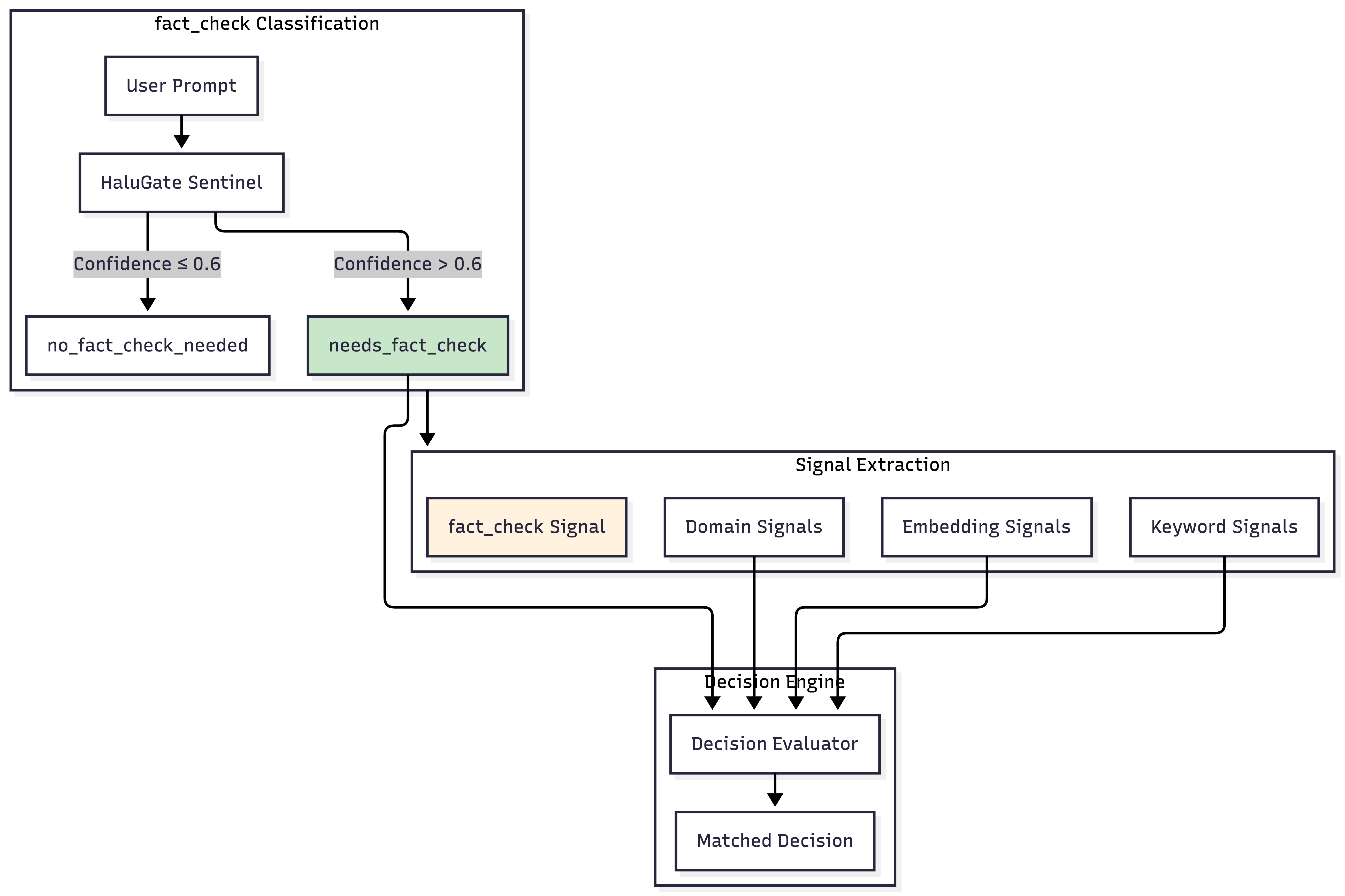 HaluGate doesn't operate in isolation—it's deeply integrated with our Signal-Decision Architecture as a new signal type and plugin.