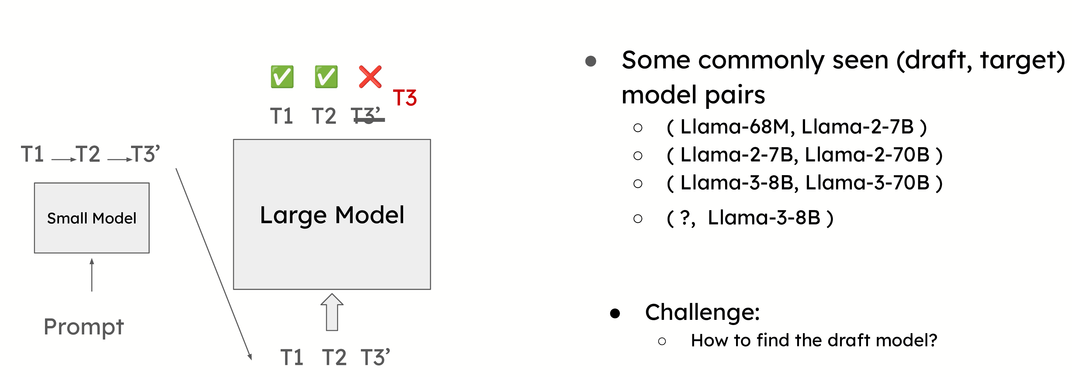 2. Target Model Verification: The larger model verifies these tokens in a single forward pass. It confirms correct tokens and corrects any incorrect ones.