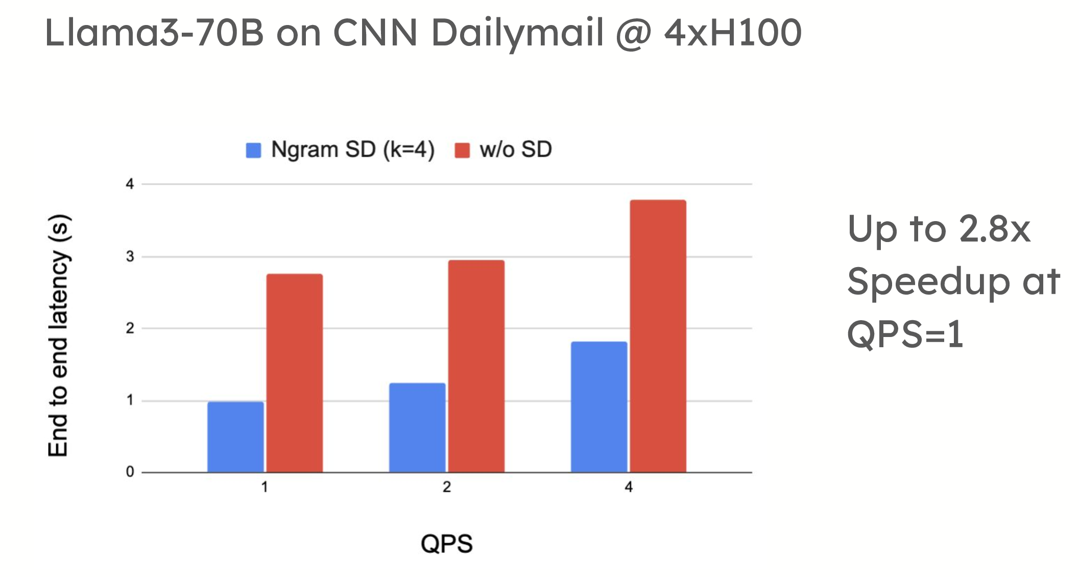 Speculative decoding in vLLM delivers substantial performance improvements, especially in low-QPS environments. As dynamic adjustments are introduced, it will become a highly effective tool even in high-QPS settings, making it a versatile and essential feature for reducing latency and increasing efficiency in LLM inference.
